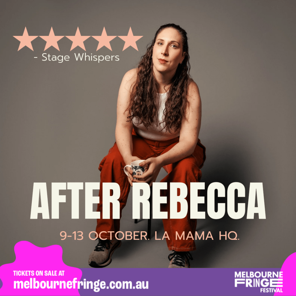 Coming to Melbourne Fringe Festival from 9-13 October, 2024. Buy tickets at: https://lamama.com.au/whats-on/melbourne-fringe-at-la-mama-2024/after-rebecca/